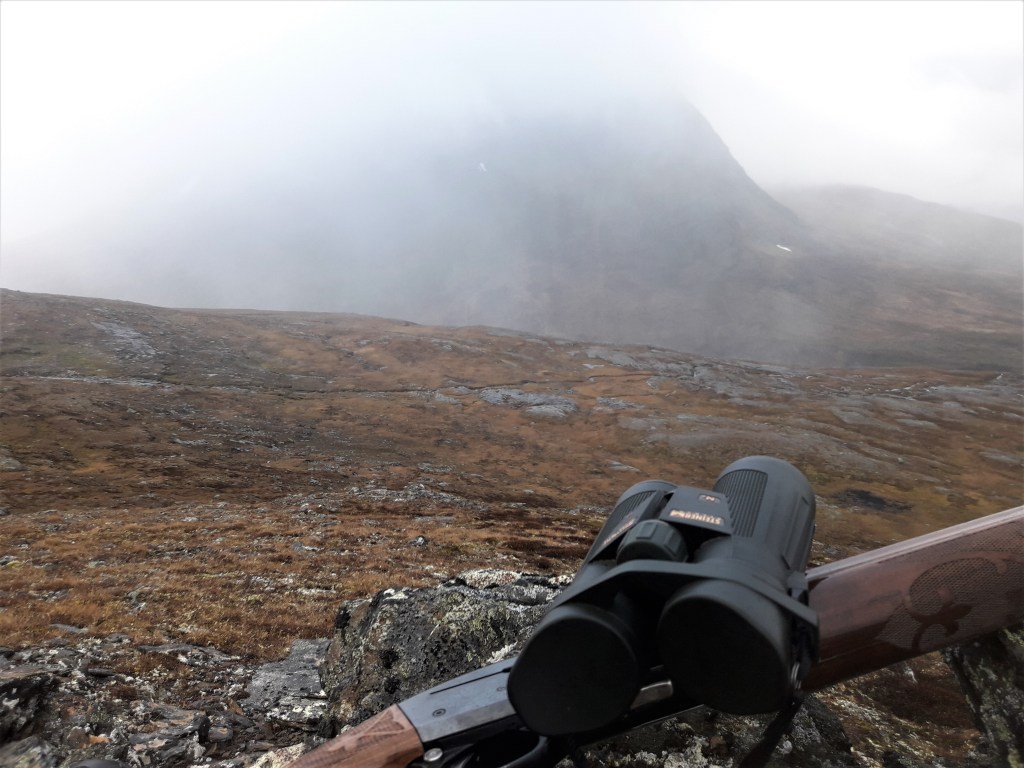 Etter ei natt med hardt regn og mye vind mot teltduken, er det litt roligere idét jeg skritter ut i terrenget søndags morgen. I dag velger jeg en annen rute, inn mot et fjellparti hvor fjorårets tur ga oss en finfin jaktopplevelse, med felt hare, flere ryper og et hyggelig antall observerte kull. Men med gårsdagen friskt i minne er det med betinget optimisme jeg forserer høydemeter, og går inn mot kjent terreng. Det er først når jeg kommer helt inn hvor jeg tenker å snu, og jakte tilbake mot leirplass, at jeg tar opp de første fjellrypene. En stegg og en høne søker le aller øverst opp under et bergfremspring. Holdet er forholdsvis langt, men uproblematisk for å kunne sette inn et drepende skudd med en langløpet hagle ladet med Nitedal Ekspress nr 5, som jeg bærer med meg et par stykker av. Jeg kjenner våpenet mitt godt, og vet at jeg lettvint kan felle sittende rype på 40 meter.
