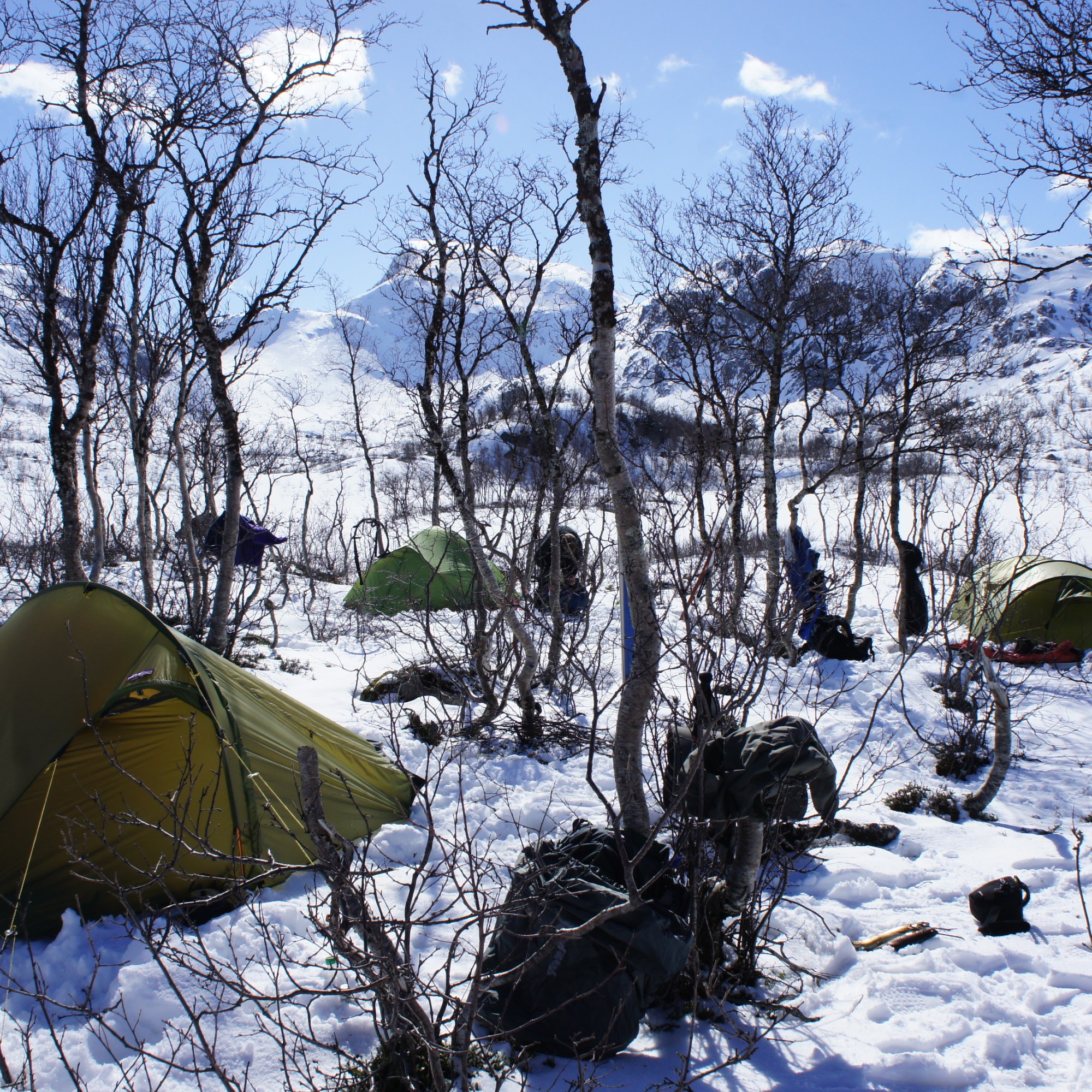 Det er midten av mai. Året er 2013. Fem fjellkarer nyter gode dager med varme og finvær i en vakker fjelldal på Ringvassøy i Troms. Teltene er strukket ut mellom bjørker på en holme, med enkel tilgang til fiskefeltet. Alle dører og ventiler står på vidt gap. Solen steker. Et tosifret antall snører står ute etter ørreten, og de fanger godt. Noen og tredve fisk, de største opp under kiloet, er allerede på land. Den første ørretgryta er fortært, og det blir fangst med hjem. Bålrøyken blander seg med tobakksrøyken ut over sene kveldstimer. Svartkjelen på glørne lades og tømmes. Lades og tømmes. Det lyges og flires. Stemningen er meget god.