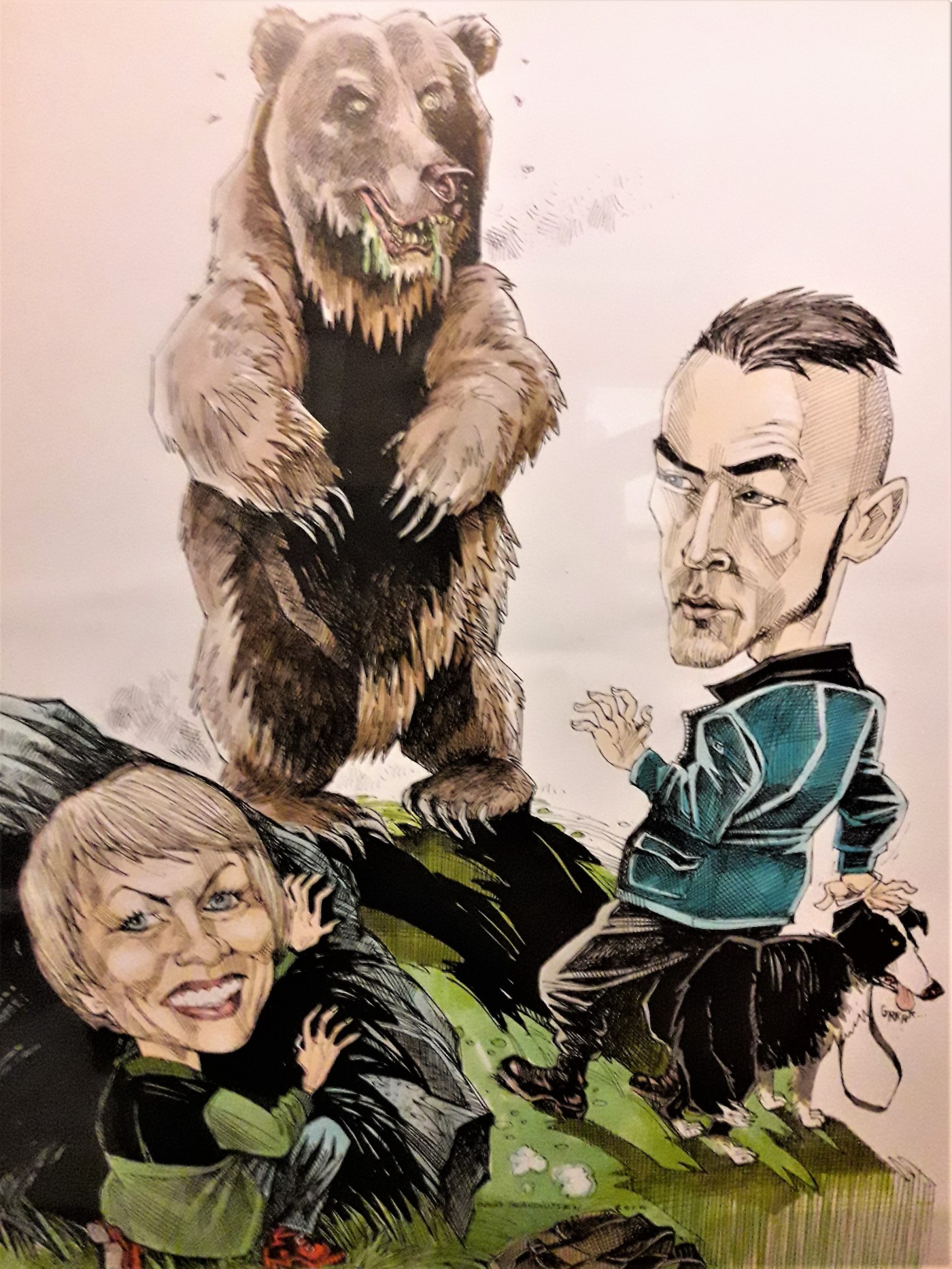 Bjørnen stanser opp et lite steinkast foran oss. Det er bratt her og den har god overhøyde. Når den i tillegg reiser seg opp på to ben får man bekreftet hvor stor en fullvoksen brunbjørn kan være. Og slik blir vi stående. Nøyaktig hvor lenge er litt utfordrende å tidfeste. På befalsskolen leste jeg en gang noe om stemmebruk i instruksjon. Du skal tale direkte mot dine tilhørere, og kraften i stemmen skal hentes fra bukregionen. Denne teorien henter jeg trolig mer eller mindre instinktivt frem idét jeg snakker til den røslige skapning som står like foran oss. Innhold og budskap i min monolog evner jeg ikke å komme i hug. Men det har tydeligvis en slags effekt, da bjørnen om litt slipper seg ned på alle fire igjen, bykser ut fra veien og raser nedover den bratte bjørkelia så det knekker i kvister. Omtrent i samme øyeblikk kan jeg skimte enda en bevegelse nedenfor meg. Et annet dyr. Om det var en annen bjørn kan ikke sies med sikkerhet.