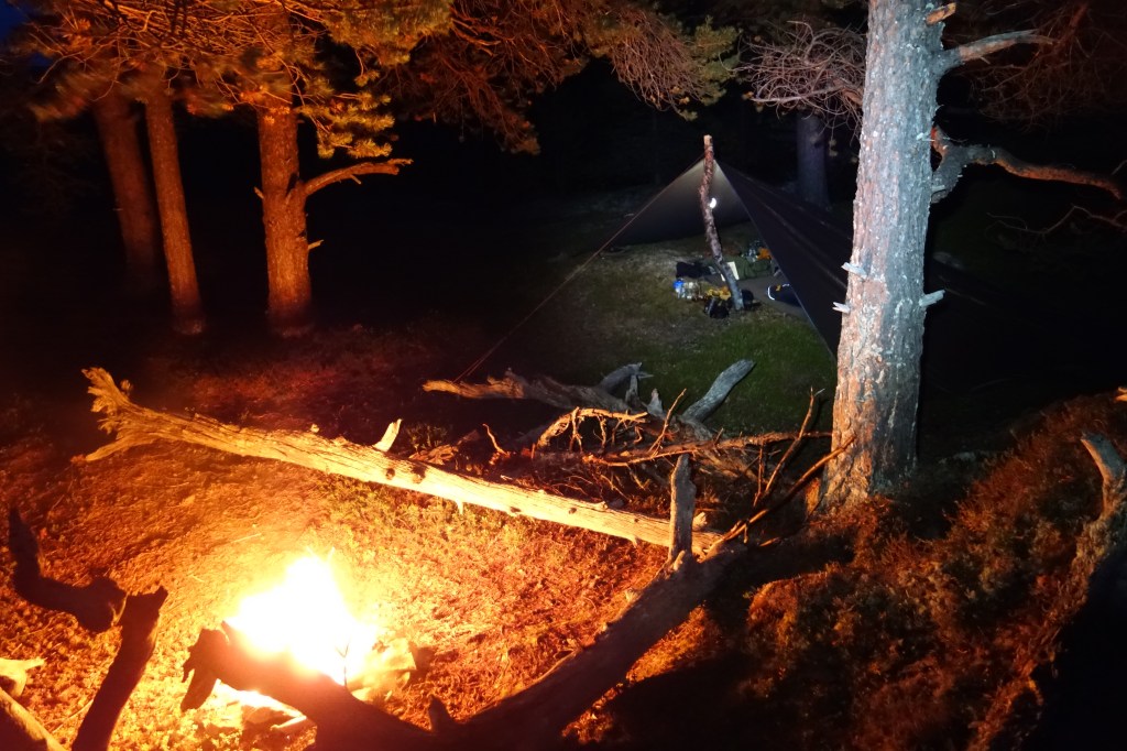 Et par uker senere. Oktober. Det er i ferd med å mørkne i Øvre Dividal. Inn over de gamle dyretråkkene som snor seg mellom eldgamle furutrær trasker to mennesker og en bikkje. Den ene av de tobente kjenner veien, og vet hvor de må trekke opp i terrenget for å treffe den gamle leirplassen. Her ligger det godt brukte ildstedet, i form av en sliten gammel steinring, plassert mellom tørrfurustokkene som også er sittebenker for slitne jegere. Vet en ikke om dette stedet, vil en heller trolig aldri være i stand til å finne det. En skjult perle i indre Troms´ villmark, og et perfekt utgangspunkt for rypejakt innover i fjellene. For en del tiår tilbake ble det praktisert snarefangst på rype i stor skala i traktene her. Da var bestandene noe annet. I dag jakter vi støkk med hagle herfra, og opp mot 1000 meter over havet. Men følelsen av gammelguttas snarefangstliv fra gammer og enkle tømmerkoier er til å ta og føle på. Og når blåbærruker og grove kloremerker i trestammene vitner om bjørnens nærvær, er det umulig å ikke la seg bli grepet av det mektige sus fra et vidstrakt stykke natur som i stor grad fortsatt får ligge i fred.