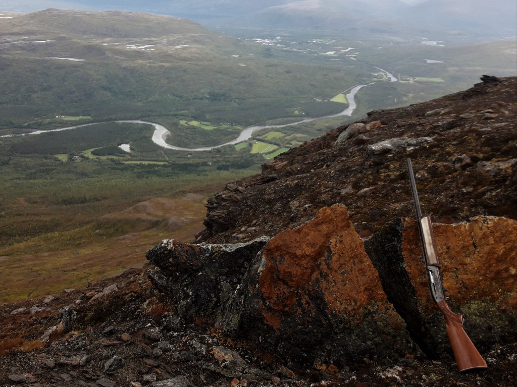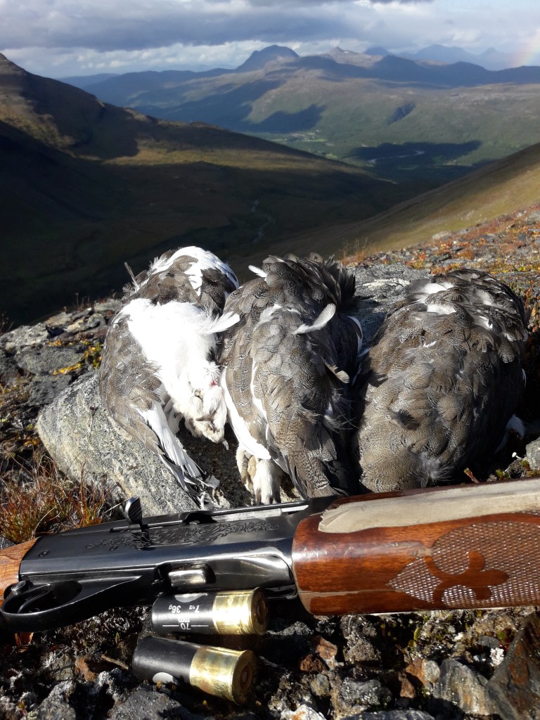 Neste dag er også min samboer Sunniva på plass med meg i fjellet. Hun med rifle og jeg med hagle. Vi tar en litt annen rute enn dagen før, men oppsøker flere av de mest ryperike stedene fra dagen før. I dag er det langt færre å se, det er nærmest som om den lokale bestand har flyttet på seg. Trukket ut av området på nattestid. Vi lokaliserer noen liryper, utenfor hold. Samt en flokk fjellryper som setter seg lagelig til for rifleskudd, men slipper unna når noen reindriftssamer på ATV kommer forbi og gjør skudd uaktuelt.