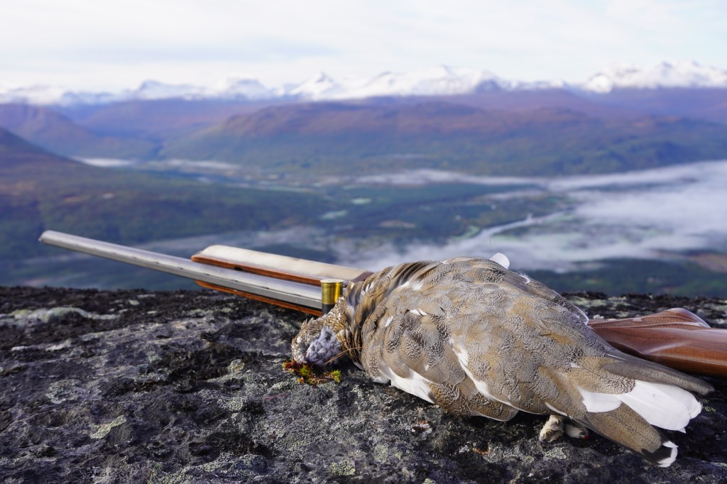 Med ladd hagle kurser jeg nordvestover fra leirplassen. Inn i Maukeriket. Nok en gang etter gråhvite fjellryper, som forhåpentlig har sitt tilhold oppe i de karrige urene. På 900 meter lokaliserer jeg de første. Ut fra en hylle over en bratt skrent stuper de. Jeg rekker å kaste opp min Remington til kinnet og slenge i vei to skudd, hvorpå det andre er fulltreff og rypa deiser i en bergnabb så fjæren fyker. Situasjon nummer to skjer i et bekkeleie preget av utallige tverrgående raviner med berg og storstein. Et krevende terreng å bevege seg i, men fin biotop for fjellets fugl. Steggen går på vingene, men bare opp i en kort bue før den plasserer seg på en stor stein, slik de kan finne på iblant. På drøyt 25 meters hold smeller det. Bakkeskudd og kort prosess. Det går lenge mellom fuglene på denne turen. Gjennom utrolig mye fint leveområde vandrer jeg med børsen i beredskap, uten å se annet enn en og annen ravn. På tampen av dagen lokaliserer jeg et siste kull og feller nummer tre for dagen.