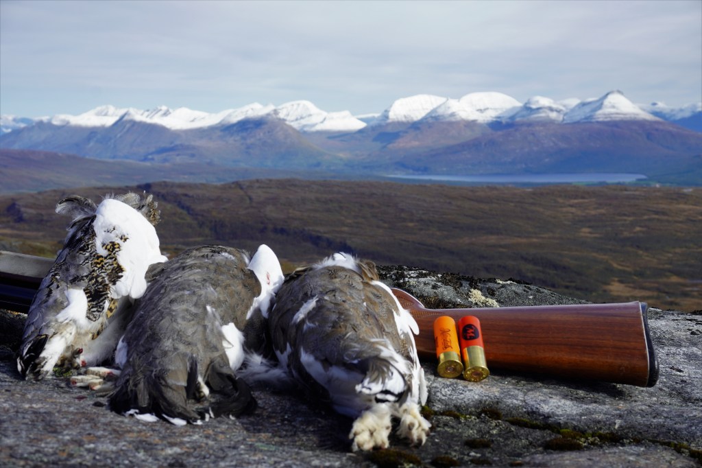 Et tusentalls meter under jaktstøvlene mine renner Målselven på sin ferd ned mot fjorden, elegant buktende mellom tallrike furumoer og jorder. Sterke vindkast fra syd presser meg nesten i kne. Jeg passerer en varde og kommer mot lesidene jeg har sett meg ut. Og her sitter fjellrypene. En stor flokk går på vingene. To skudd smeller og blir borte i kulingen. En rype faller, rulles i avispapir og pakkes i sekken. Det tok sine timer før det omsider ble fangst under de rådende forhold. Men da smaker det ekstra godt.