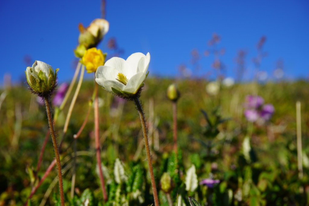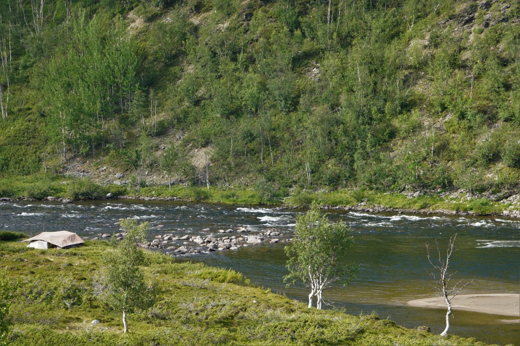 Få dager deretter vandrer jeg alene mot røyevannet i Dividalen. Tar sjansen på at isen har gått, og jaktende dividalsrøyer er i bett. Innover fjelldalen har landskapet eksplodert i farger, med tallrike arter av lyng og fjellplanter i full blomst. Fjellet inntar sin sommerdrakt, vindene er milde og solen bruner raskt vinterblek hud.