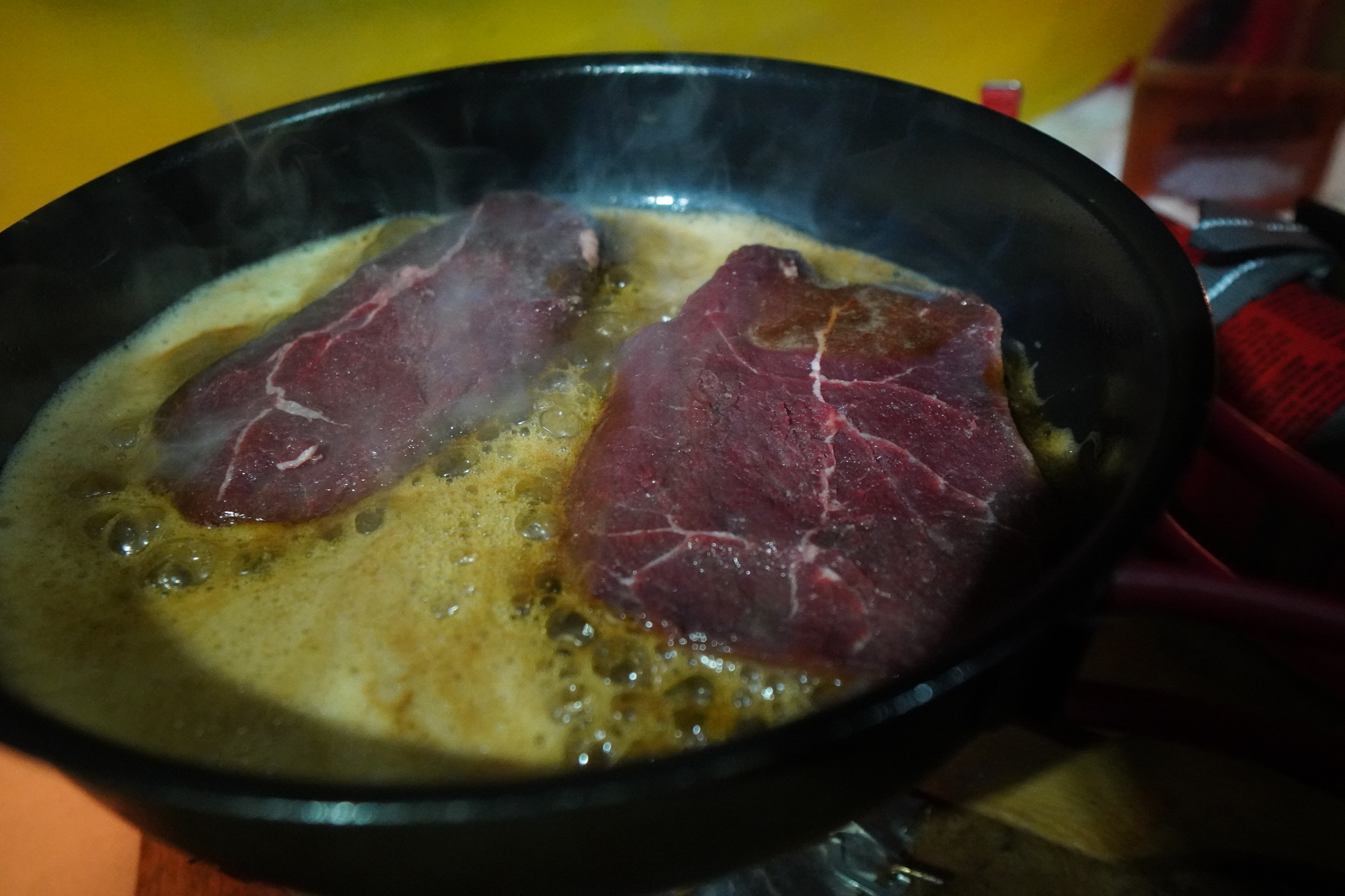 Vi nyter tilværelsen i og rundt teltet. Eter godt, fyrer primus og lytter til lyden av rapende fjellrypestegger og kaklende lirypestegger på begge sider av dalen.