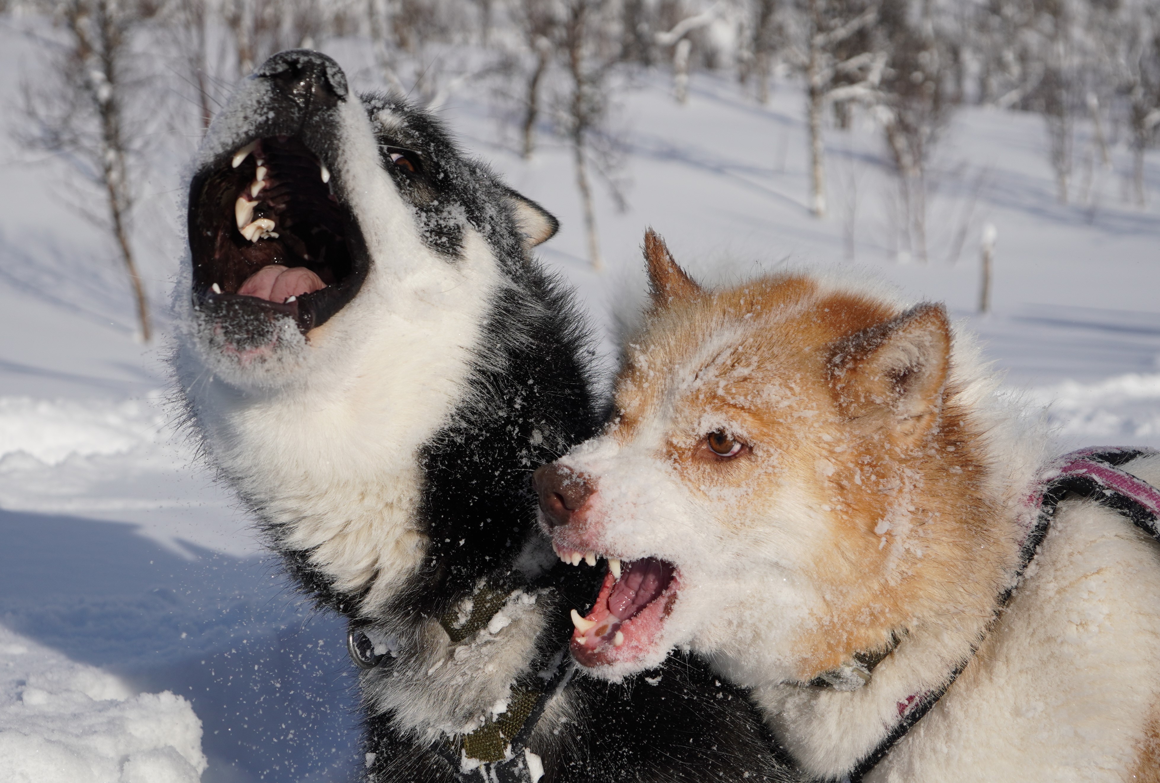 Så er vi inne i årets tredje måned. At et polart lavtrykk er under oppseiling vet vi lite om der vi lar strobene fra våre hodelykter vise vei mot hemmelighetsfulle vann i skjæringen mellom Målselv og Balsfjord. En liten feilnavigasjon trekker oss inn i en nokså bratt skogli, der vi må slite oss opp gjennom tørr løssnø for å komme tilbake på planlagt trasé. Uten grønlandshundene foran ville blodsmaken i kjeften vært enda mer framtredende. Men vi kommer oss fram og legger oss mellom bjørkeleggene, selv om de store furuene litt lengre unna også fristet som plass for vår vesle leir.
